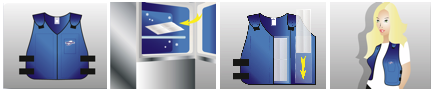 Ook kan het vest zelf ondergedompeld worden in koud water om een extra koelende werking te hebben (zie hiervoor de Hyperkewl producten). Activeringsinformatie.