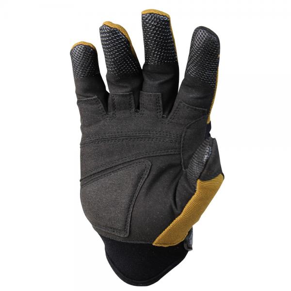 Synthetisch lederen handschoen met verstevigde padded knokkels, spandex rug, klittenband sluiting, anti-slip vingertoppen.