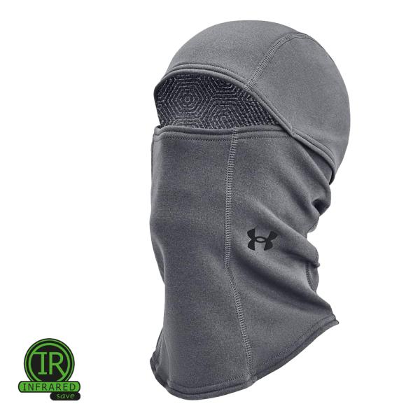 The close-fitting Under Armour balaclava is lightweight, thin and breathable. It offers full face protection that extends over the neck and can be converted into a neck warmer.