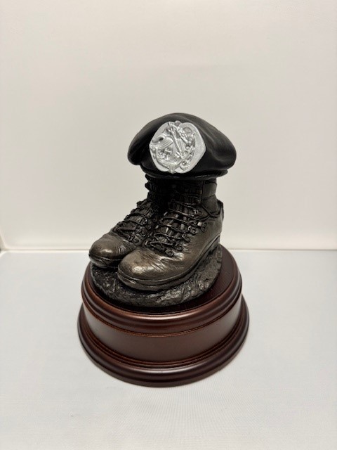 Boots and Beret Cavalerie 43 Mechbrig zwarte baret met zilveren embleem.