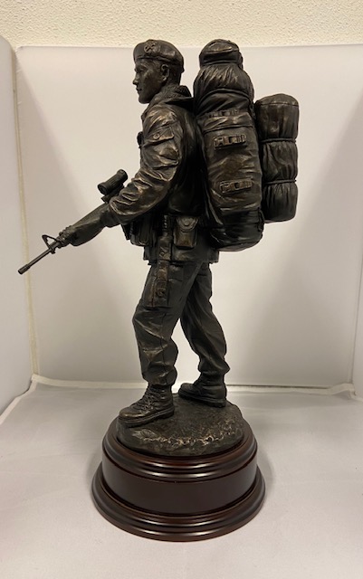 Bronzen beeld (wb), zoals bij de poort van de Van Braam Houckgeestkazerne in Doorn is geplaatst. Hoogte: 35cm. gemaakt van Bronze Resin.
