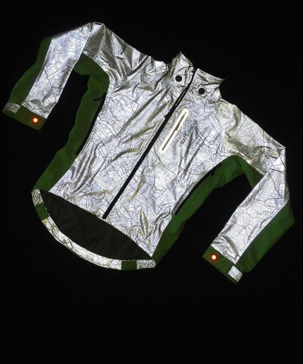 The MapREflect fabric design is made up of 11 international cities known for cycling. The streets literally light you up for maximum visibility as headlights approach. In addition to being reflective, MapReflect fabric is waterproof, slightly stretchy and features a brushed lining for comfort and warmth.