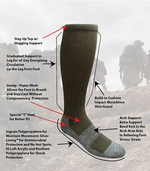 De Rock is ontworpen voor lang marsen met een zware last. De sok behoud zijn vorm gedurende vele kilometers lopen en biedt steun waar nodig. X-Static zilver dat in de sok verwerkt is gaat bacterie vorming tegen, iedere dag weer.