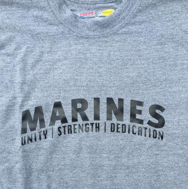 Nieuw Mariniers T Shirt met de Korpswaarden in het engels aan de voorzijde bedrukt. En 1665 op de achterzijde bedrukt.
